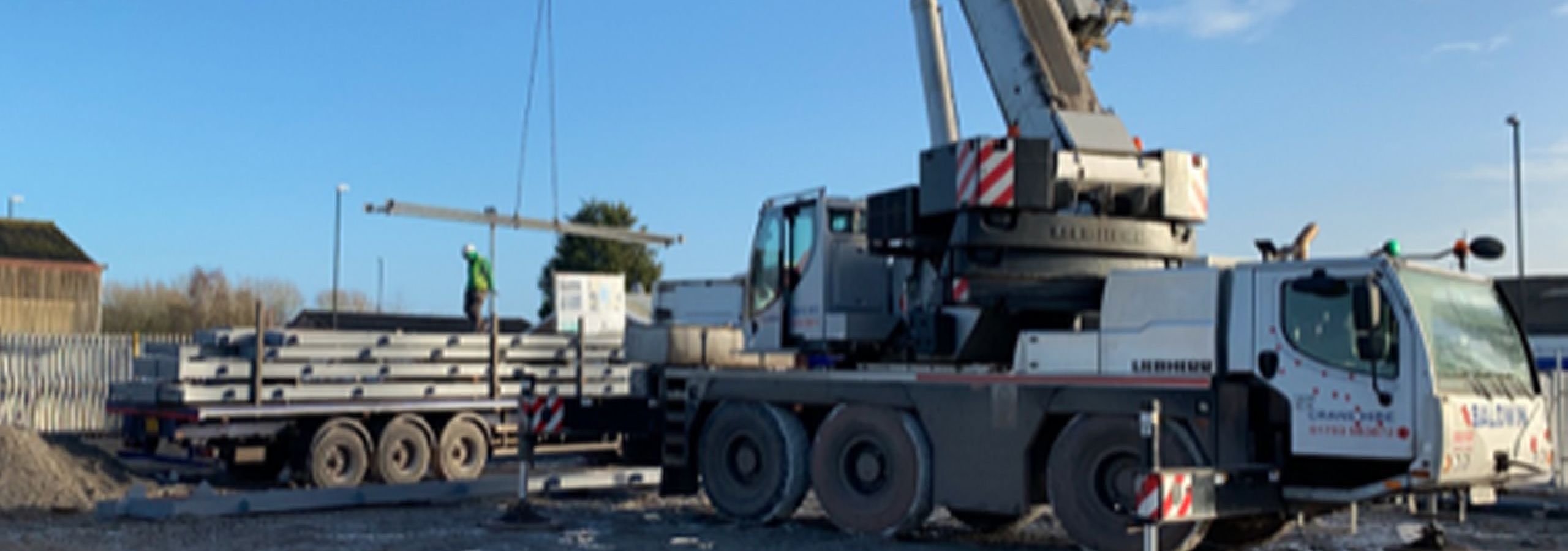 Load arrives and is being unloaded. The steel is delivered on an articulated load.